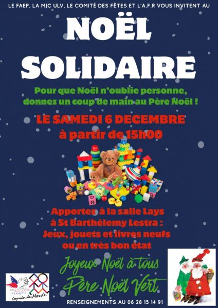Afin de parfaire la journée de Noël prévue par le FAEP, la MJC, le COmité des Fêtes et l'AFR, nos quatre associations ont décidé de placer cette journée sur le signe de la solidarité.